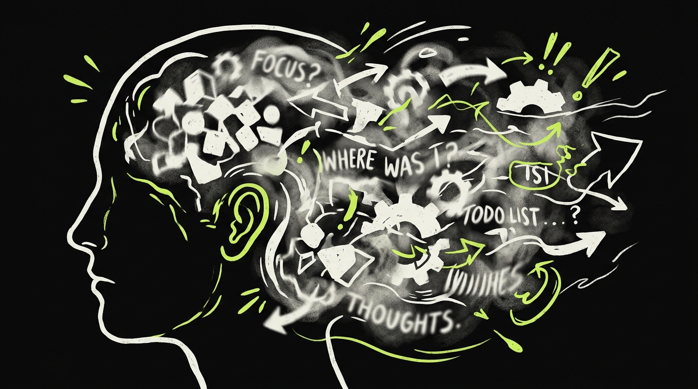 ADHD brain fog is the persistent experience of cognitive cloudiness — that frustrating state where your thoughts feel slow, scattered, and just out of reach. It shows up as an inability to start tasks, losing a word mid-sentence, re-reading the same paragraph four times without absorbing a word, or sitting down to work and staring at a blank screen for an hour. For the millions of people living with ADHD, this isn't an occasional bad morning. It's a recurring, often daily experience that makes simple cognitive demands feel genuinely overwhelming.