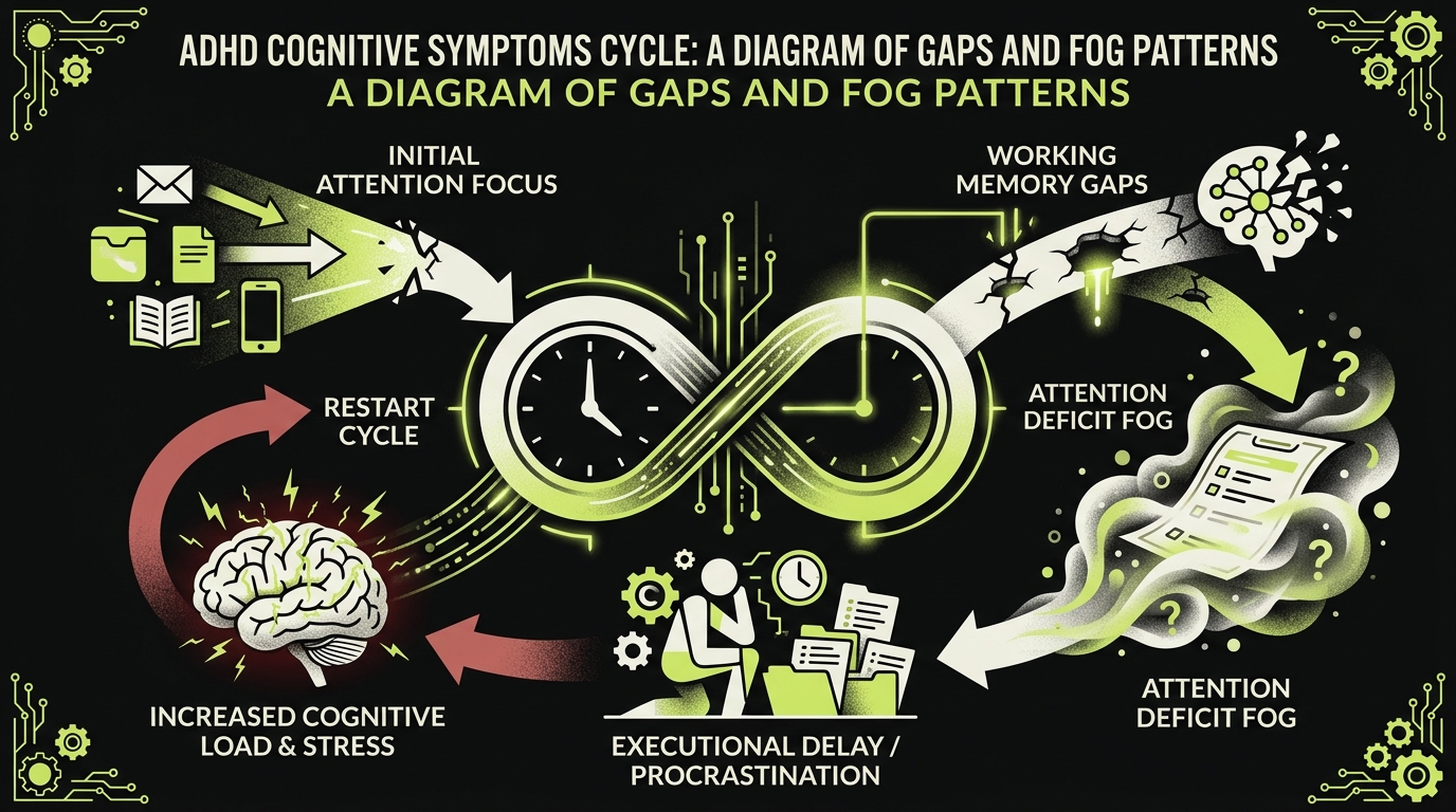 One of the hardest things about ADHD cognitive symptoms is that they're invisible to others — and easy to dismiss as laziness, disorganization, or lack of effort. Understanding what these symptoms actually look like can help you identify them in your own experience and explain them to people around you.