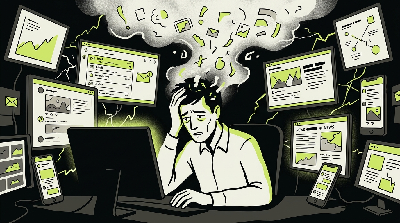Multiply that across dozens of interruptions per day, and the result is a brain that never enters the sustained, restorative cognitive states it needs — producing that familiar low-grade mental fog by afternoon.