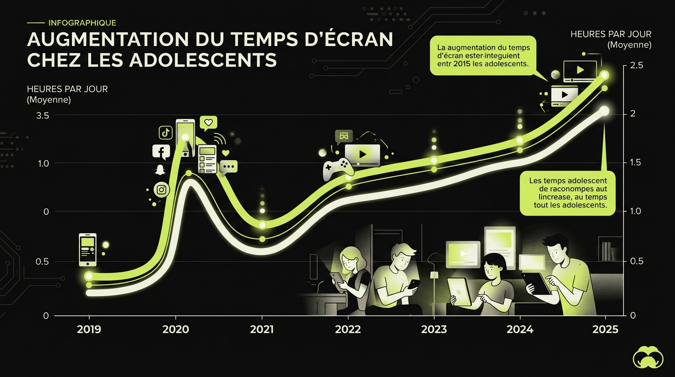 L'addiction téléphone ado n'est pas une métaphore parentale exagérée. C'est un comportement documenté, étudié, et en progression constante depuis l'avènement des smartphones. Un adolescent français passe en moyenne plus de 5 heures par jour devant son écran — hors usage scolaire. Et pour beaucoup, cette présence n'est pas choisie : elle est subie.